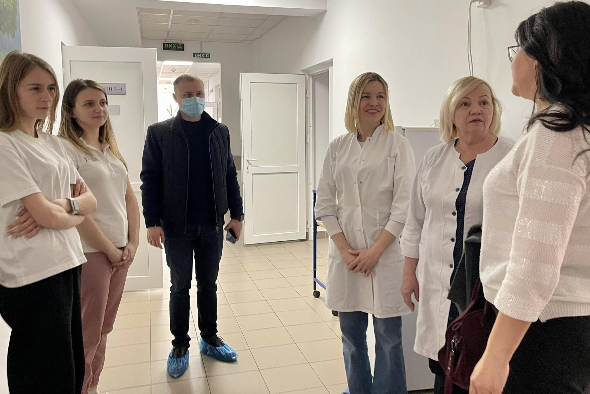 Керівниця КНП “Городоцька ЦЛ” Городоцької міської радиІрина Точена провела ознайомчий візит для гостей окремими відділеннями лікувальної установи, розповіла про актуальні запити та потреби, подякувала за доречний гуманітарний вантаж різних товарів медпризначення та медпрепаратів.