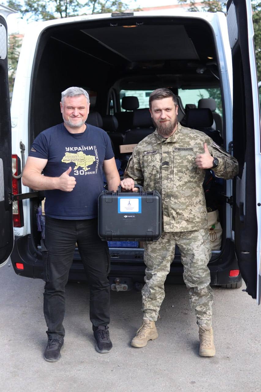 –1 ОШП (Дмитро Філатов (Перун), Юрій Панів, Павло Романишин) – DJI Matrice 4 Termal, DJI Mavic 3 Enterprise, бус #MercedesSprinter від родини Матвіїшин, бус #RenaultMaster від сім’ї Шаповалових , джип #FordRanger від друзів, 20 комплектів (плитоноски, наколінники, панами) від #HelpHeroesOfUkraine