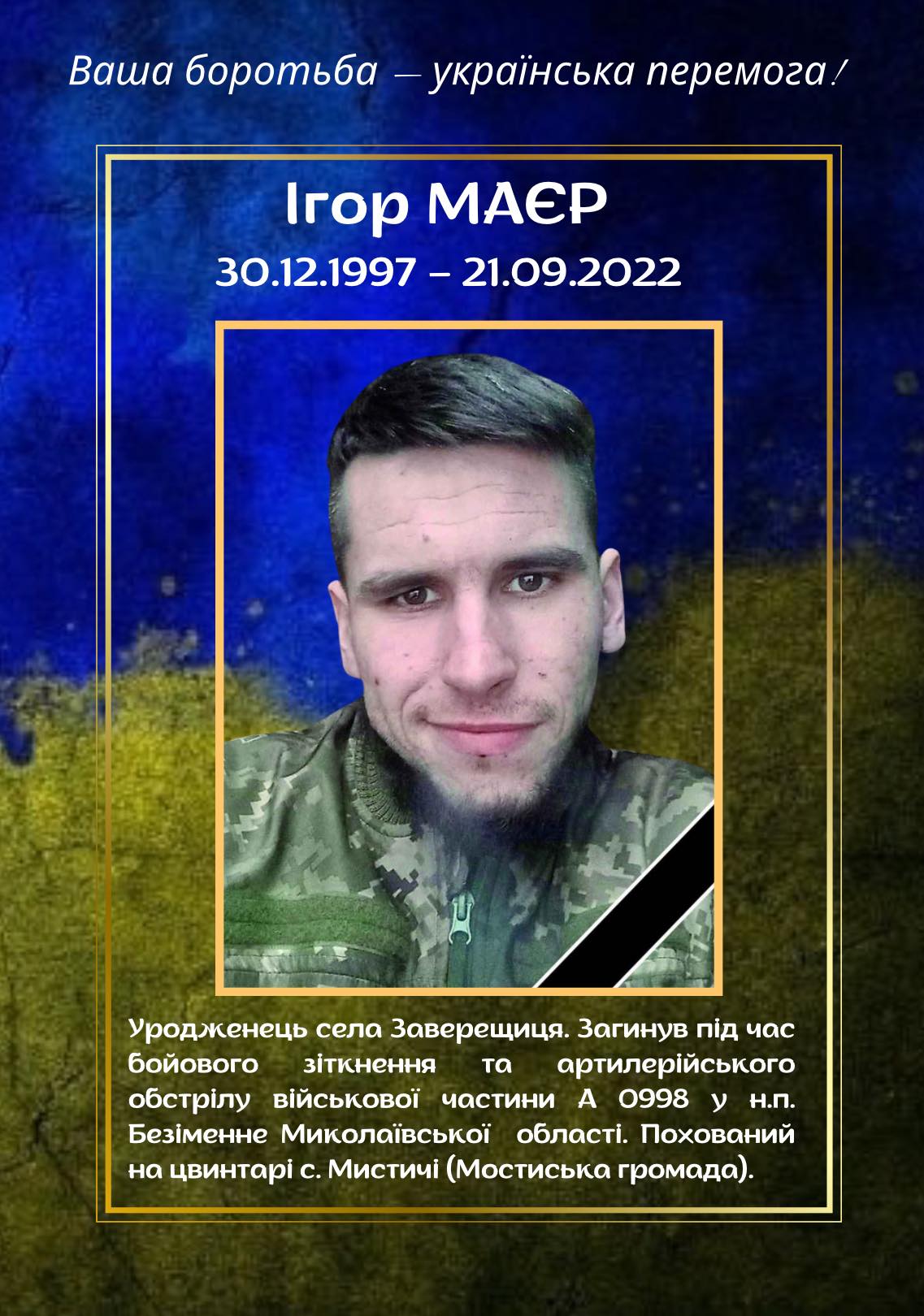 У треті роковини загибелі молитовно згадуємо воїна Ігоря Маєра (30.12.1997 – 21.09.2022).