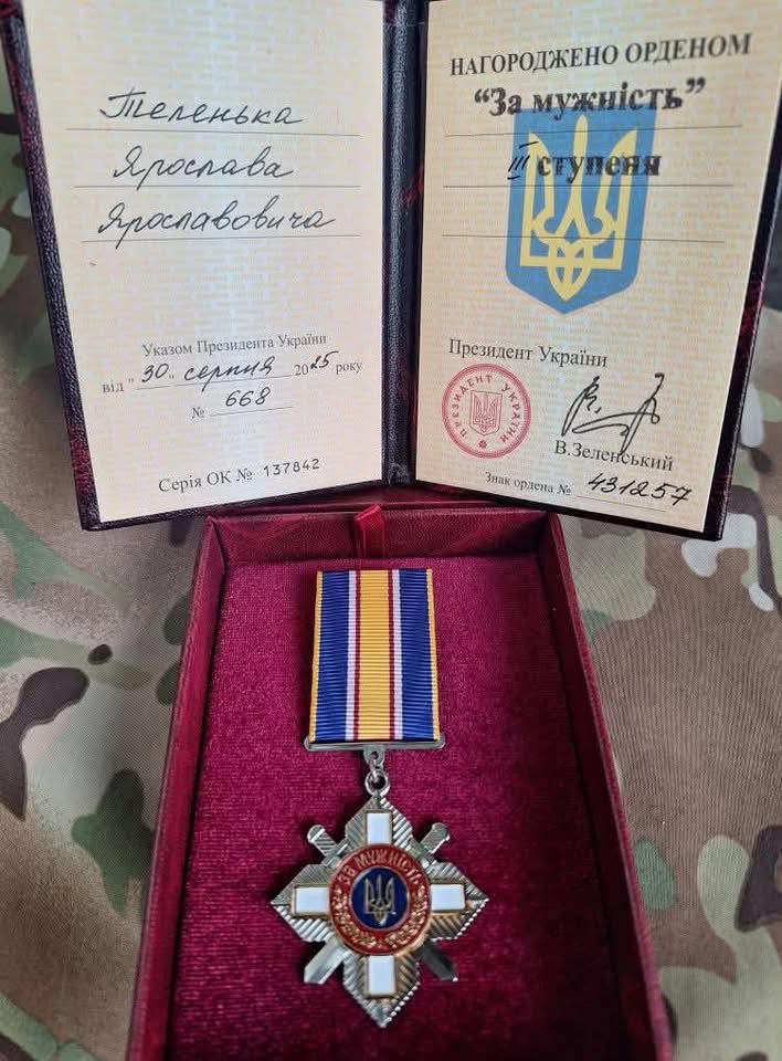 Наш відважний земляк Указом Президента від 30 серпня 2025 р. №668 удостоєний високої державної нагороди – ордена “За мужність” ІІІ ступеню.