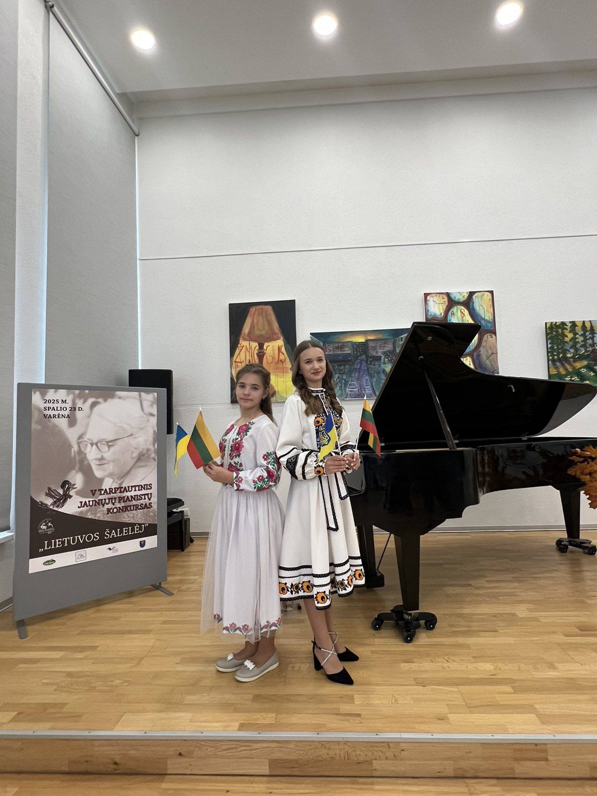 Продемонстрували музичні таланти на конкурсі піаністів наші зірки Юстина Горішна та Софія Дунас. Вони виконали твори видатного литовського композитора М.К. Чюрльоніса та українського композитора. Музика об’єднала три культури — литовську, українську, польську — у щирому звучанні дитячих сердець.