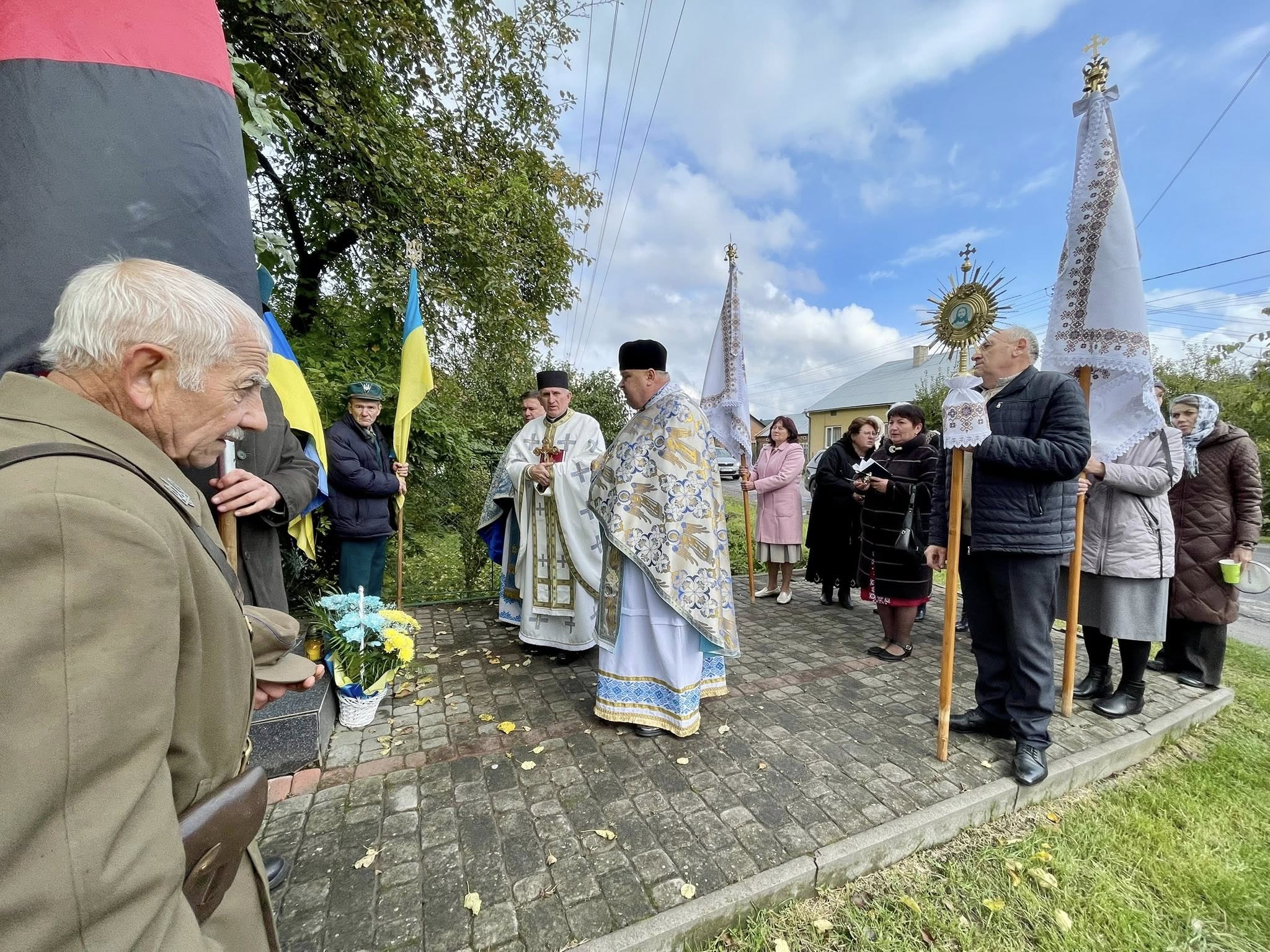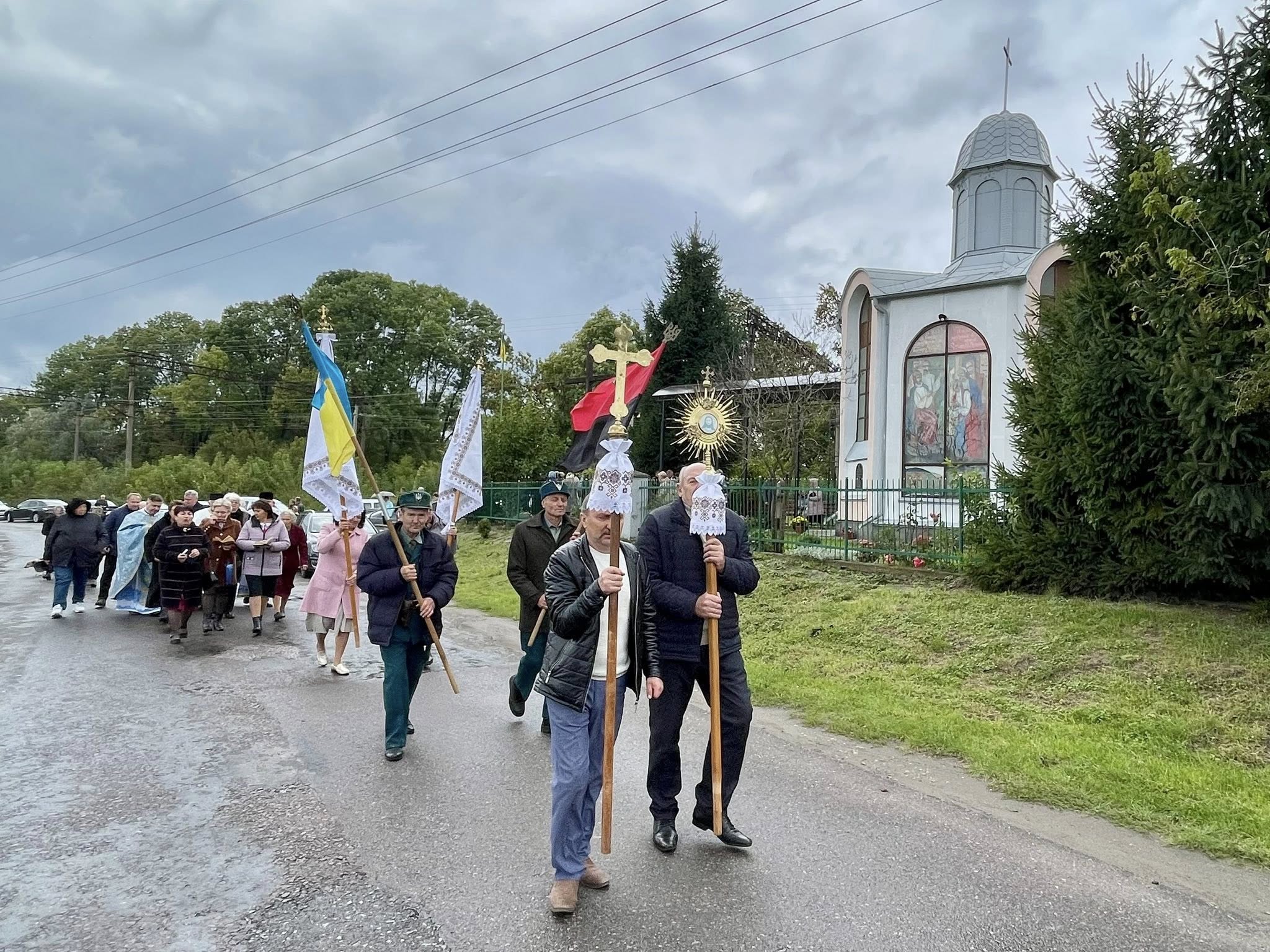 За усталеним звичаєм учасники Богослужіння з фанами та прапорами пройшли до пам’ятного хреста на місці загибелі упівців – Антона Цапа, Володимира Табаки, Івана Ветошка, де духівники звершили чин парастасу.
