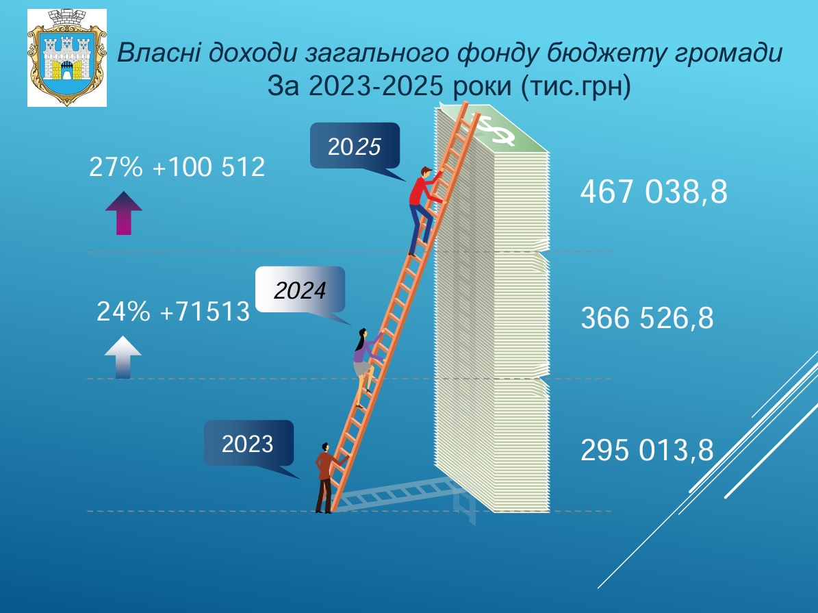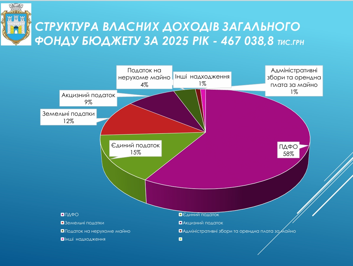 Зокрема, до загального фонду міського бюджету торік надійшло 467 038,9 тис. грн податків, зборів та платежів, що на 32 752,1 тис. грн або 7,5 відсотка більше до уточненого плану. Затверджений річний план виконано на 33,4 відсотка більше. Порівняно 2024-м роком надходження зросли на 100 512,1 тис. грн або на 27,4 відсотка.