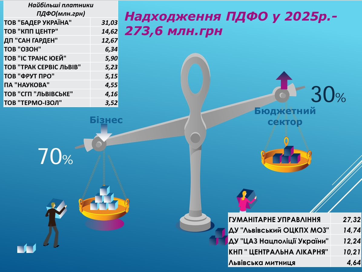 Загалом в 2025 році до міського бюджету надійшло 273578,4 тис. грн податку на доходи фізичних осіб, що становить 106,0 відсотки до уточненого плану. Порівняно з 2024 роком надходження зросли на 56682,0 тис. грн або на 26,1 відсотка.