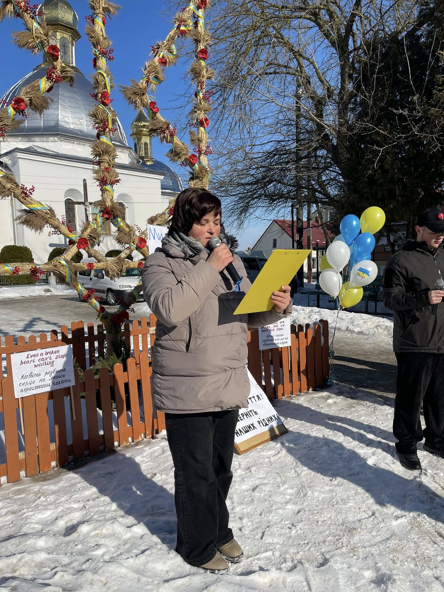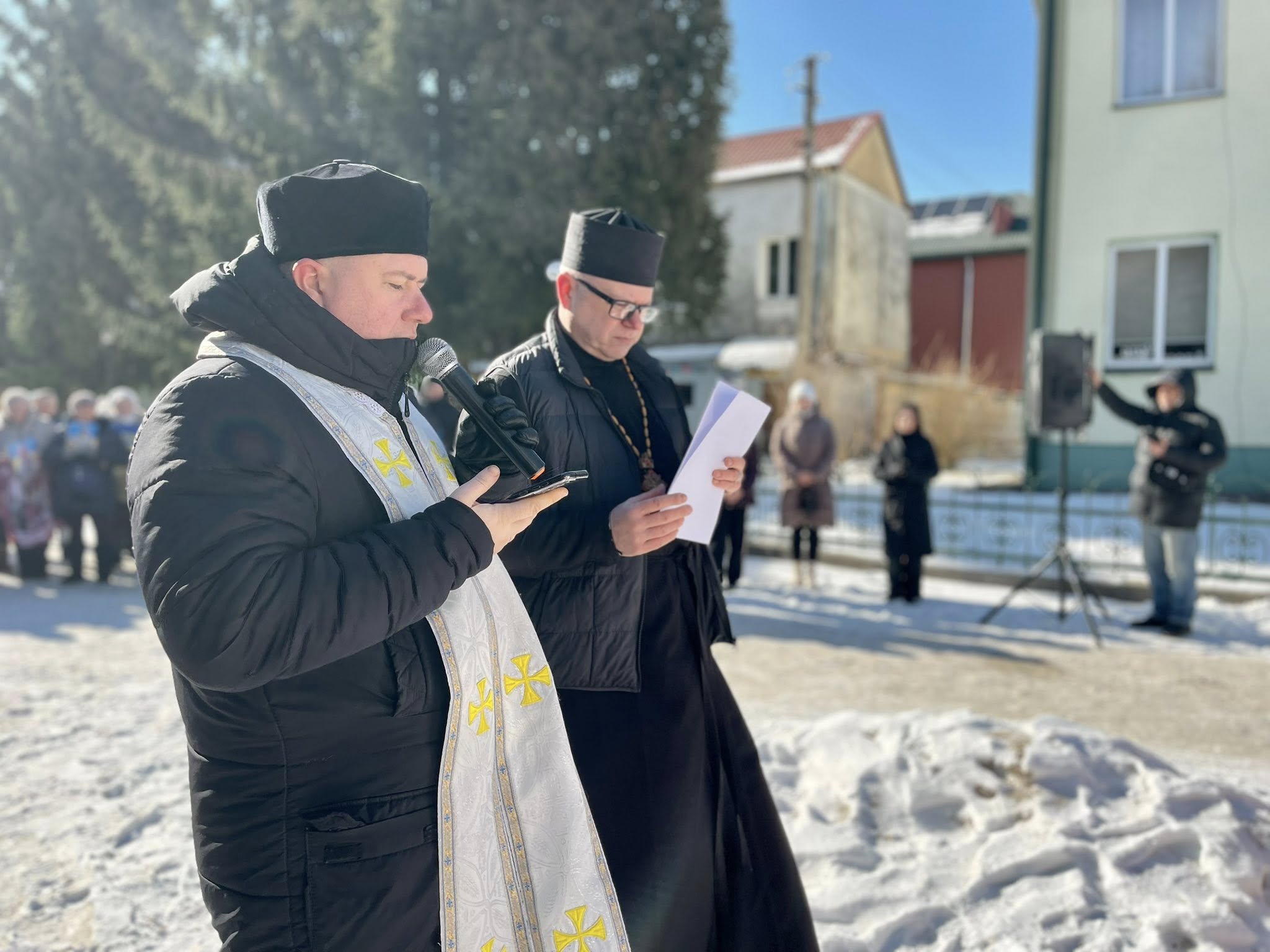 Біля храму Благовіщення у тиші молитви разом з отцями Михайлом Греділем та Назарієм Греділем довірили Богу свою віру в повернення воїнів додому.