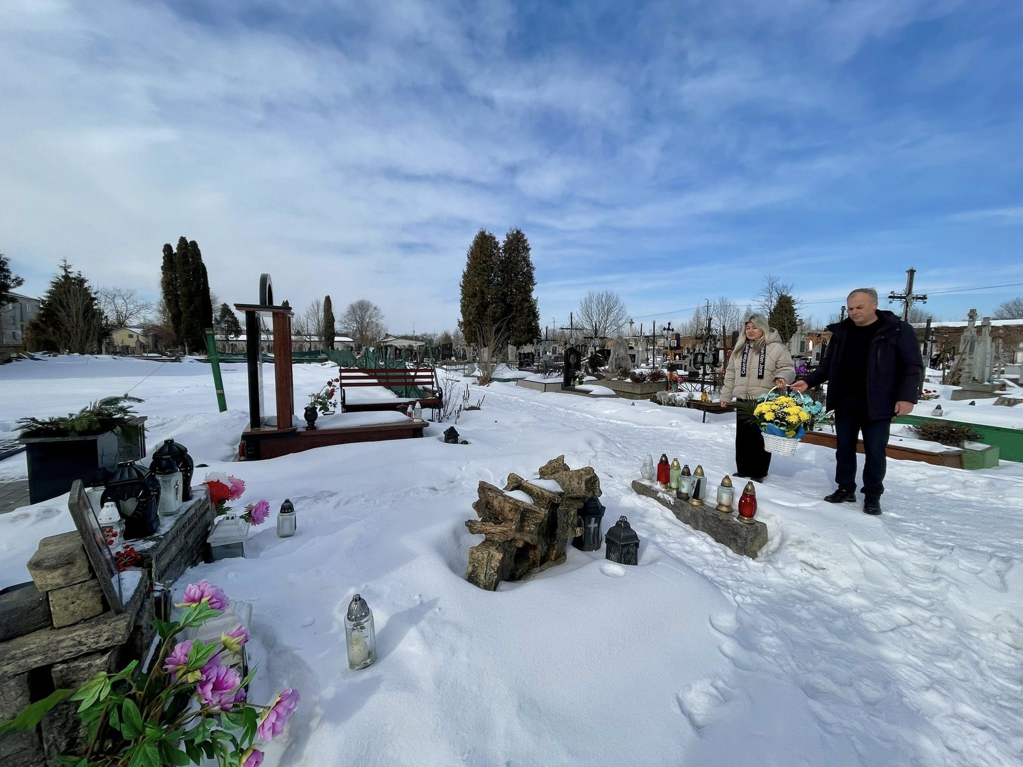 Керуючий справами виконавчого комітету Городоцької міської ради Богдан Степаняк та керівник гуманітарного управління Оксана Лучко запалили лампадки та поклали квіти до могили Героя Небесної Сотні Івана Бльока.