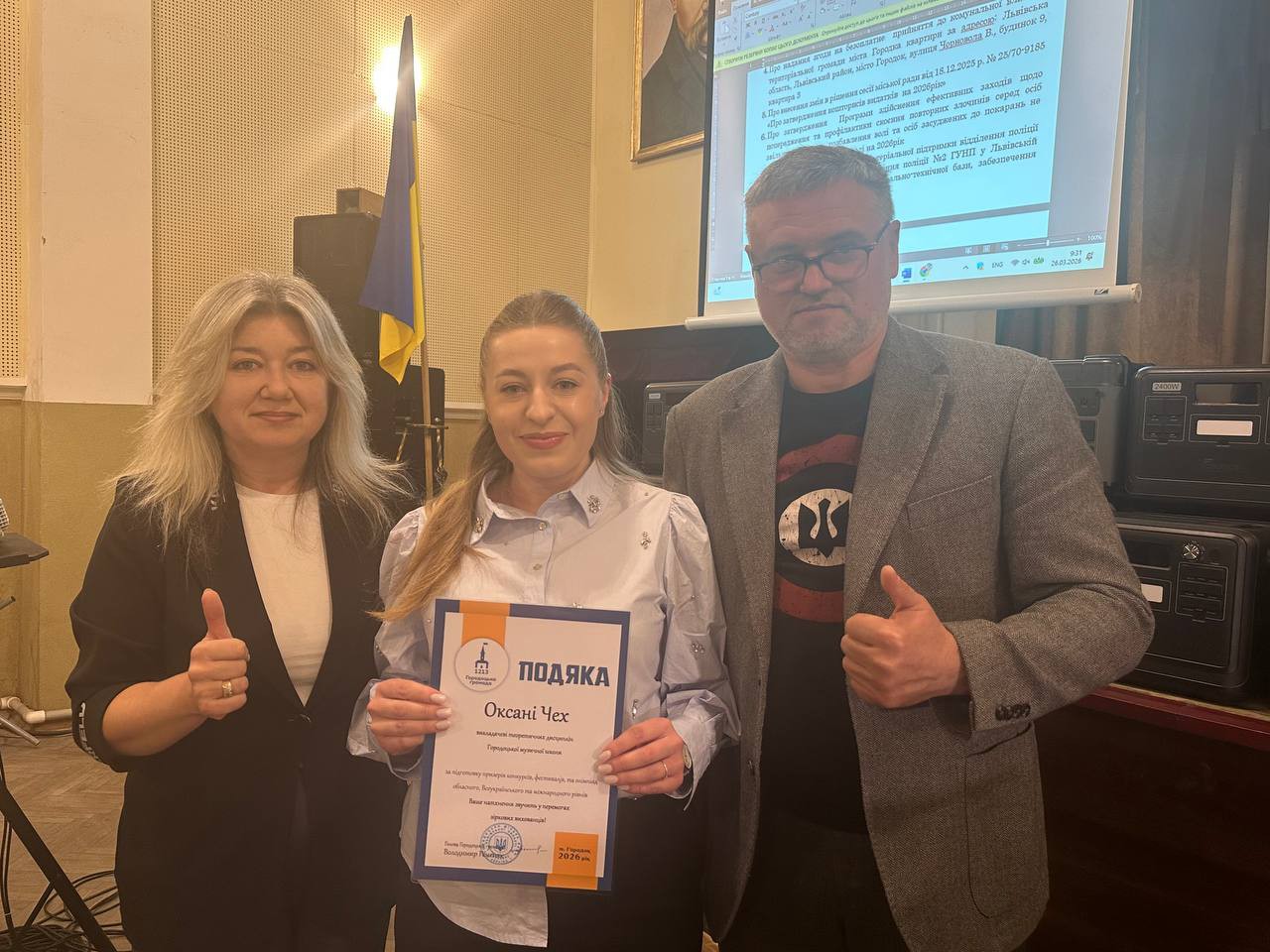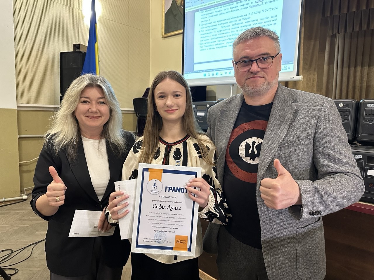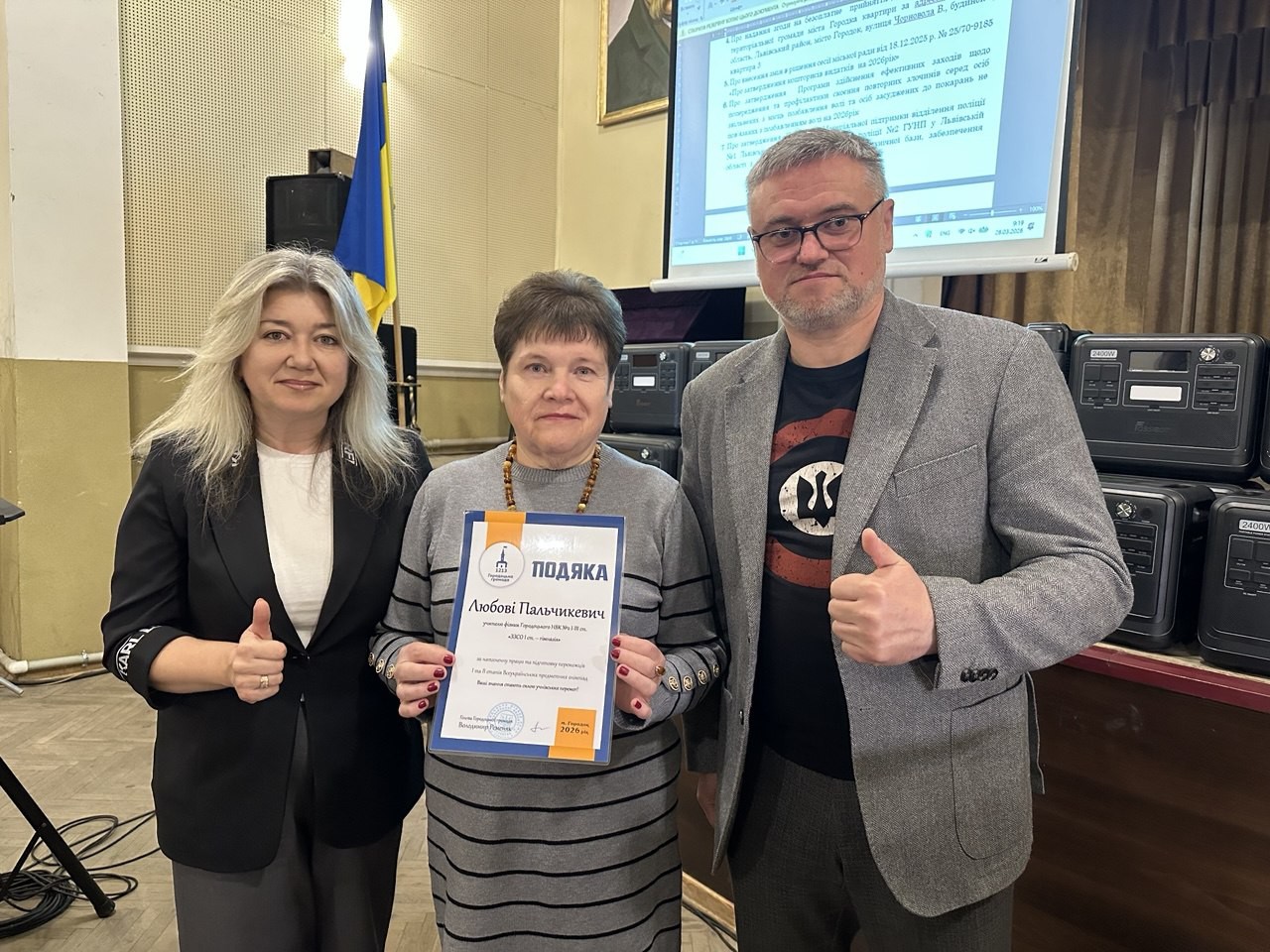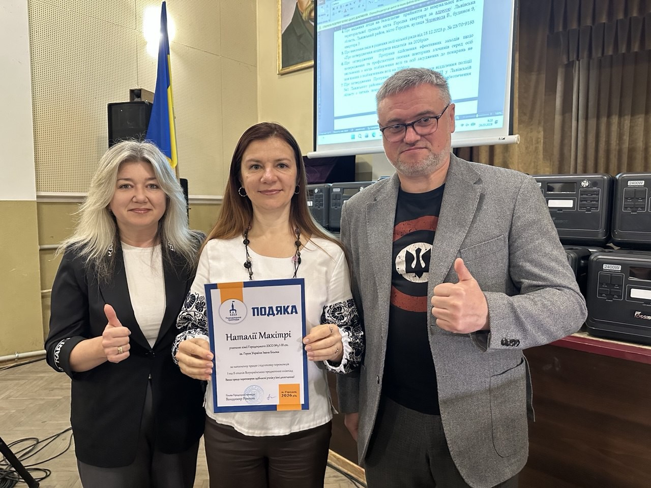 Голова Городоцької територіальної громади Володимир Ременяк спільно з керівницею гуманітарного управління Оксаною Лучко вручили подяки та грошові премії за високі досягнення в освітній, спортивній та культурній сферах.