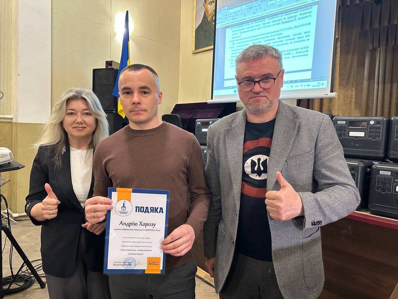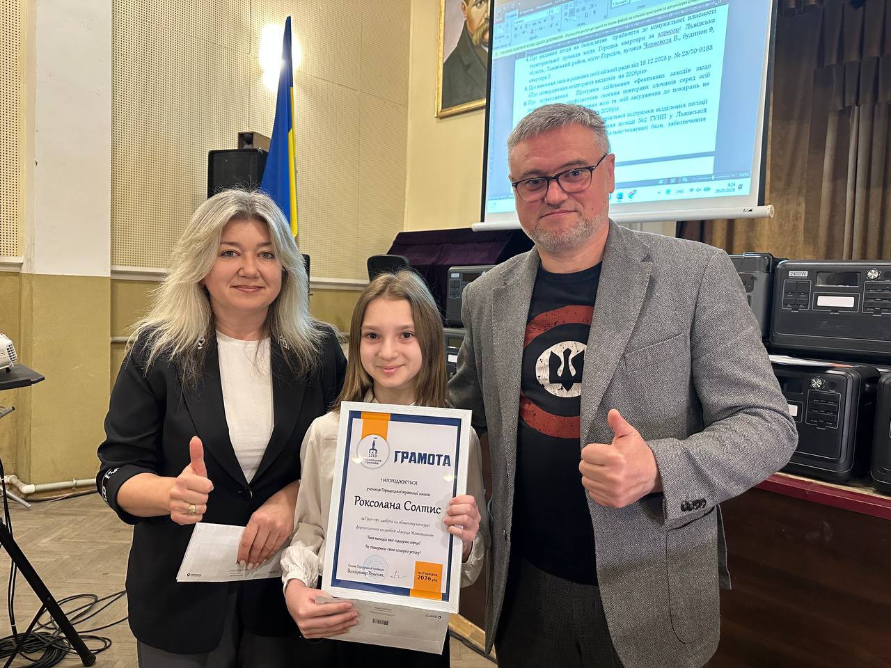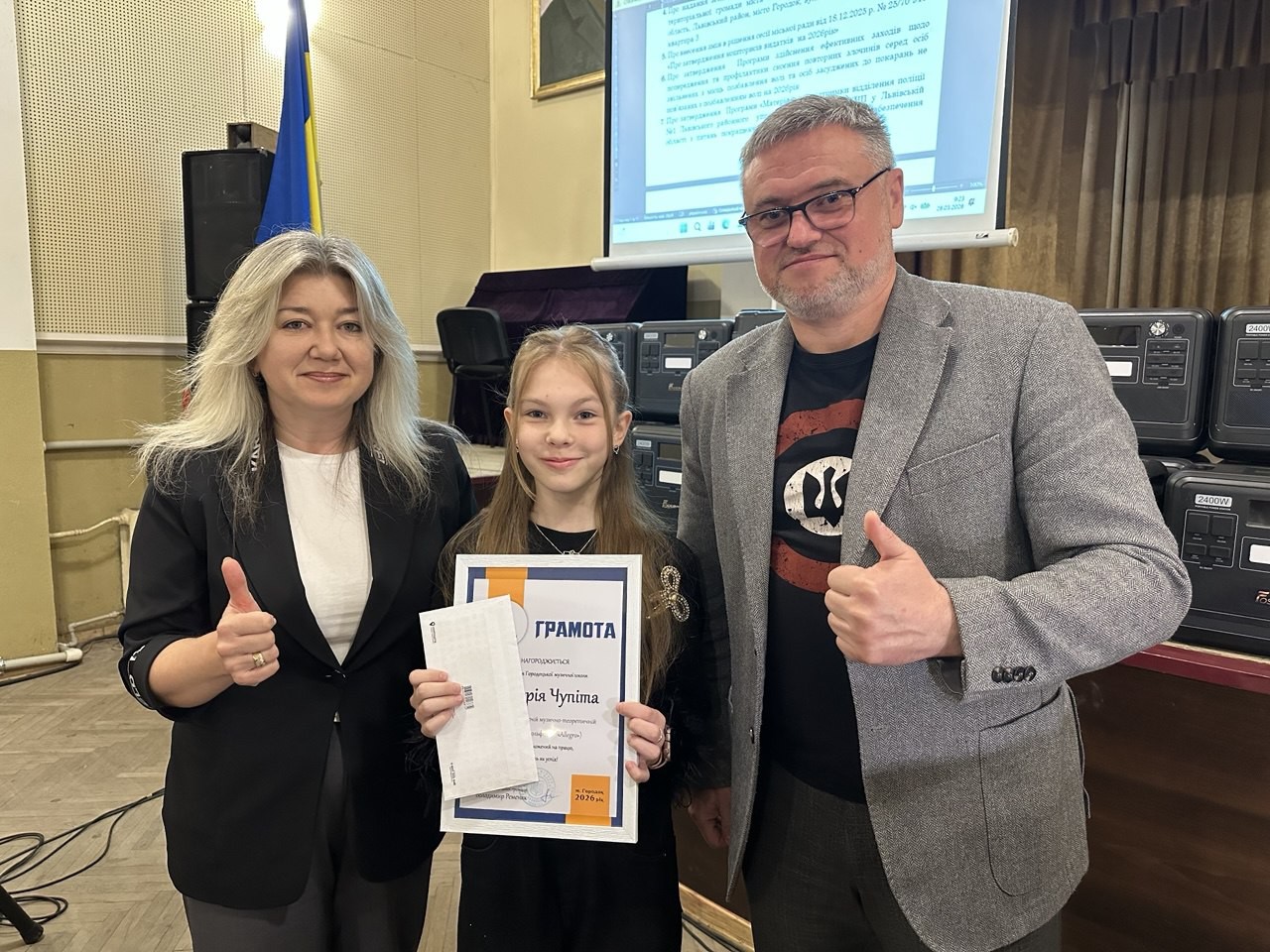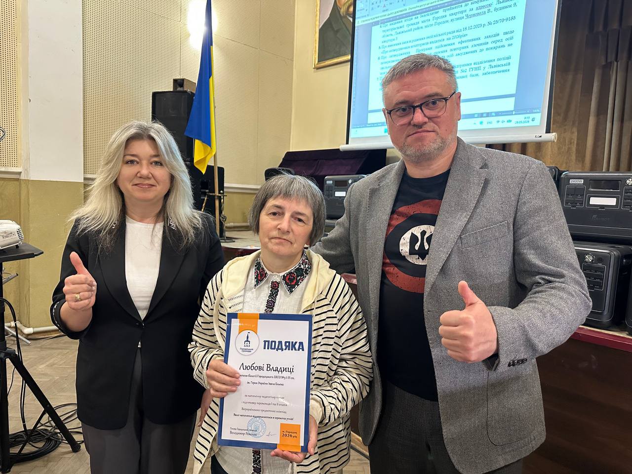 Голова Городоцької територіальної громади Володимир Ременяк спільно з керівницею гуманітарного управління Оксаною Лучко вручили подяки та грошові премії за високі досягнення в освітній, спортивній та культурній сферах.