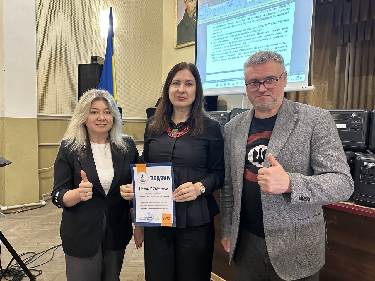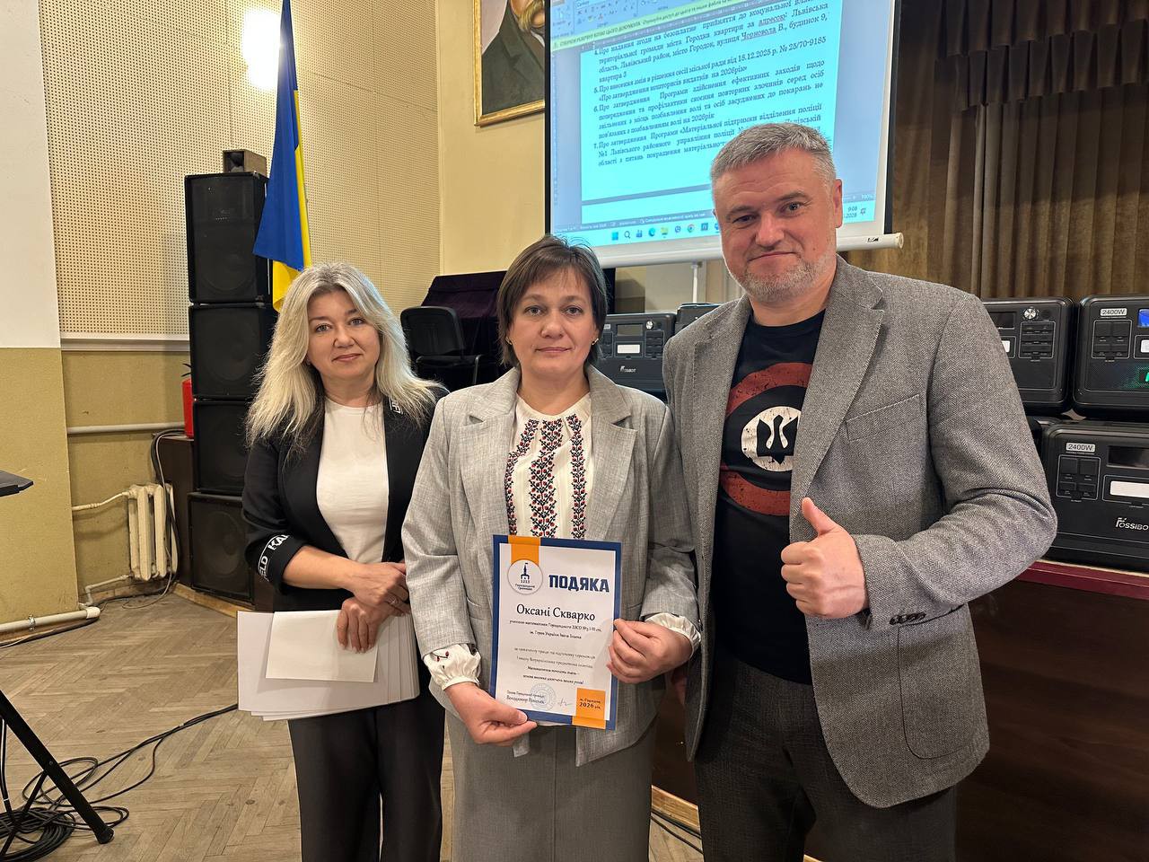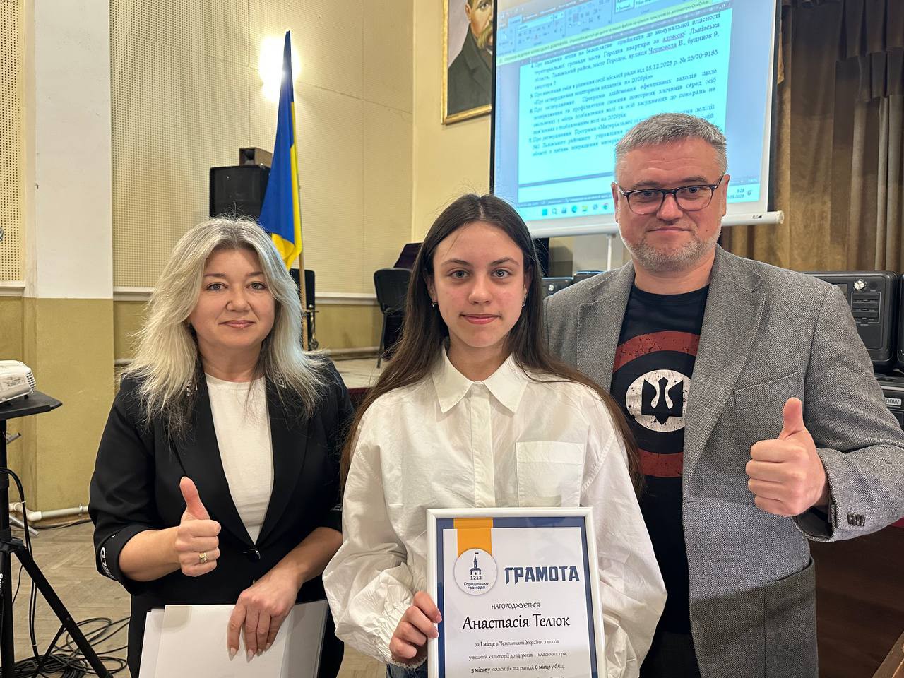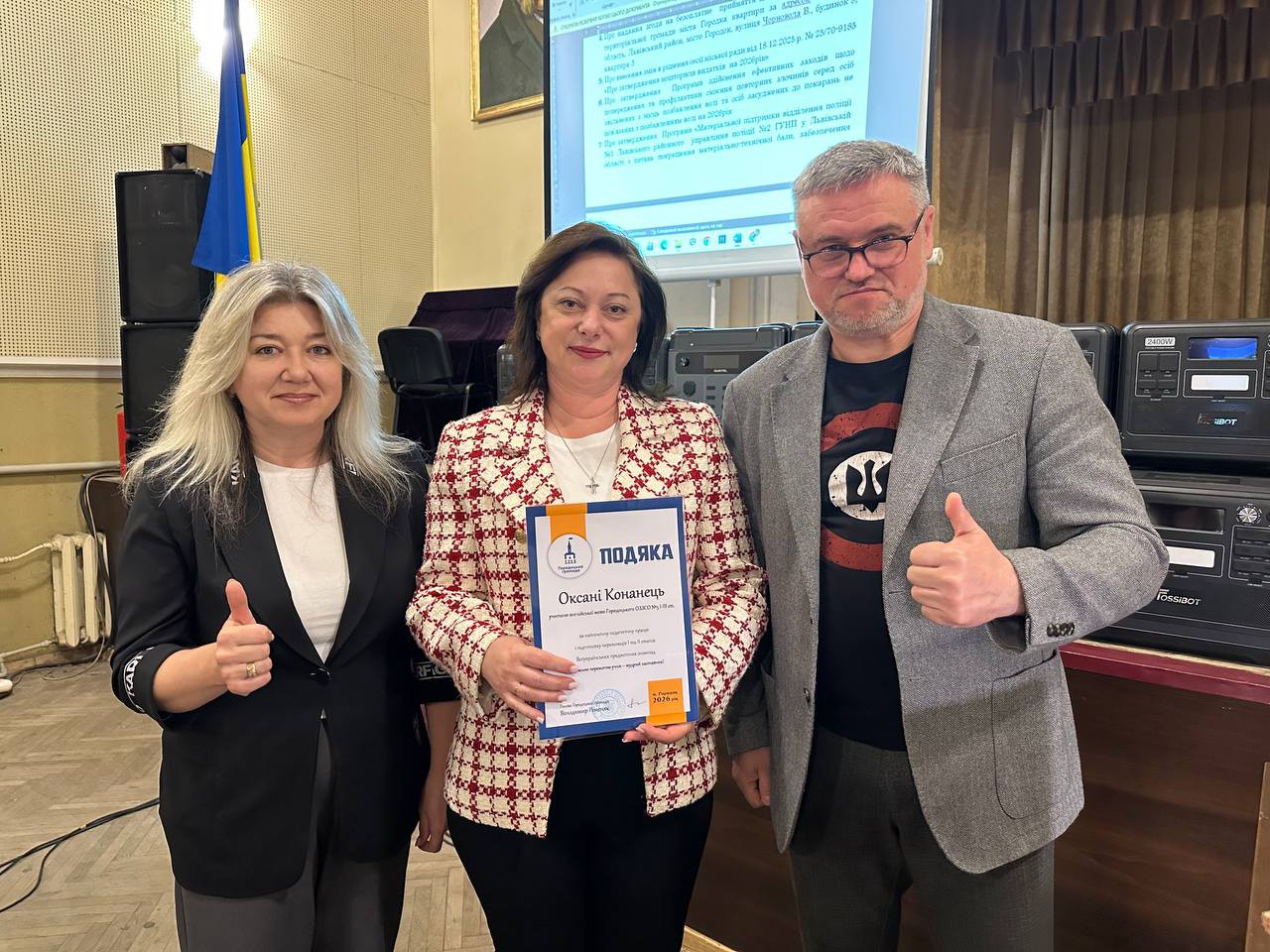 Голова Городоцької територіальної громади Володимир Ременяк спільно з керівницею гуманітарного управління Оксаною Лучко вручили подяки та грошові премії за високі досягнення в освітній, спортивній та культурній сферах.