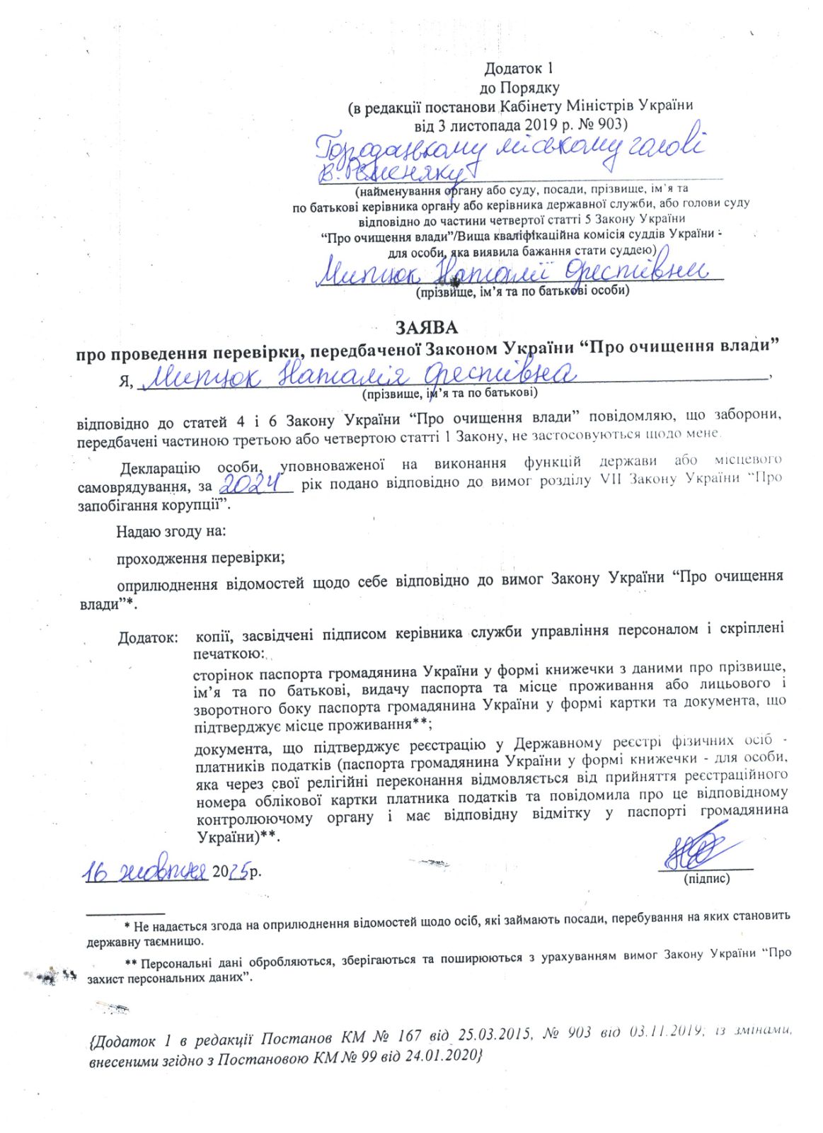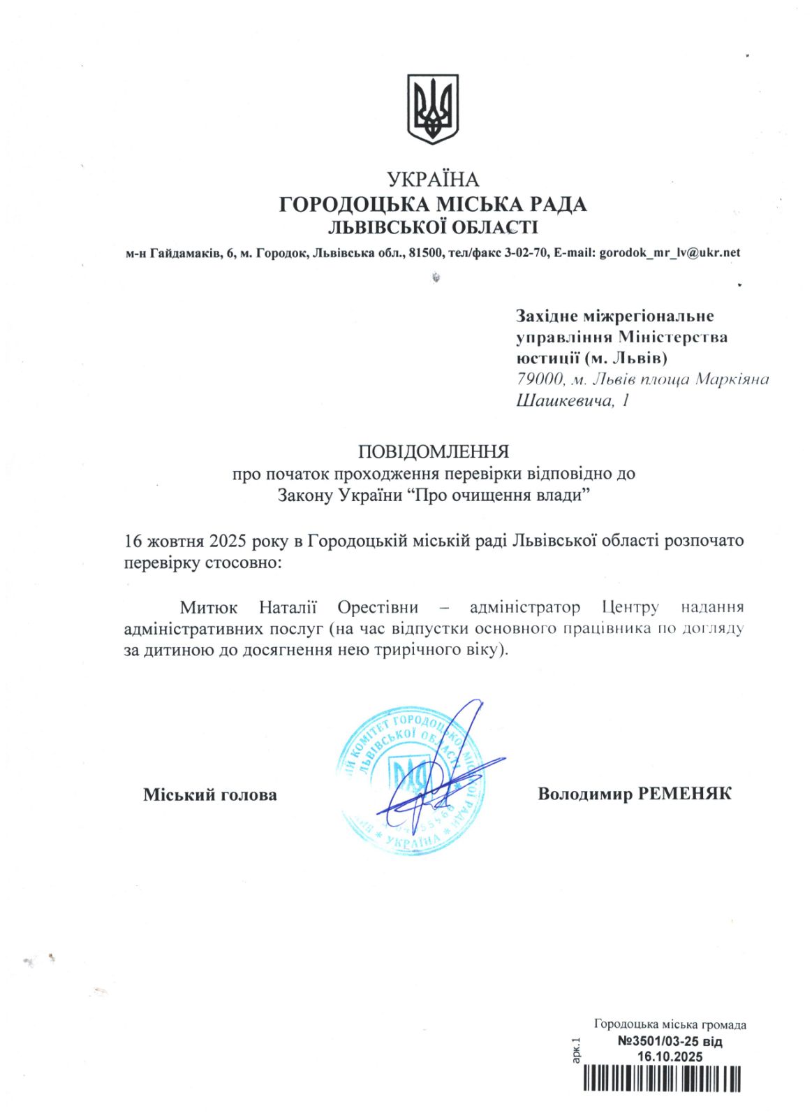 Про початок перевірки, передбаченої ЗУ “Про очищення влади” щодо Митюк Наталії Орестівни – від 16.10.2025 Декларація Митюк Н.О. Повідомлення про початок перевірки Митюк Н.О. Заява про очищення влади Митюк Н.О. Про початок перевірки, передбаченої ЗУ “Про очищення влади” щодо Колосовського Б.Б. – від 01.10.2025 Декларація Повідомлення про початок перевірки Колосовського Б.Б. Заява про очищення влади Колосовського Б.Б.